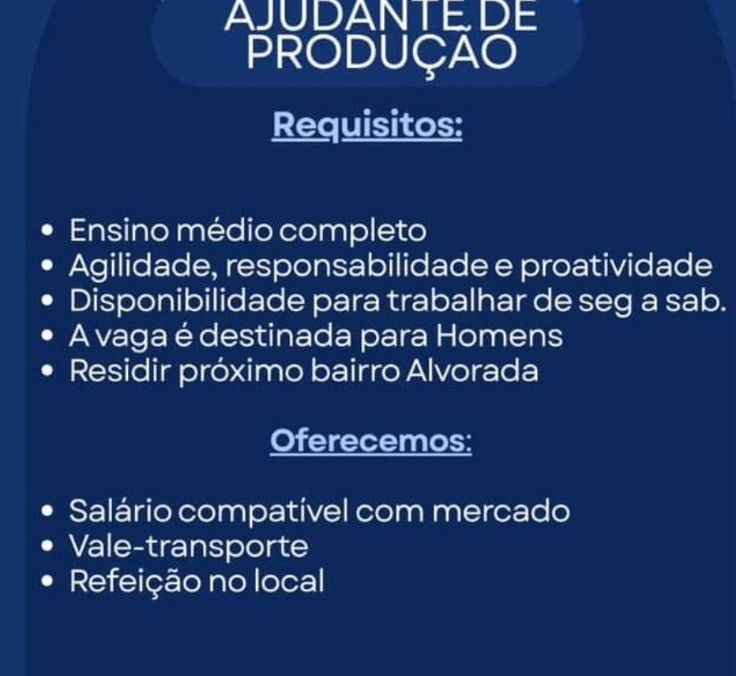Vagas para Auxiliar de Produção; Vai Ter Rota e Alimentação no Local da Empresa