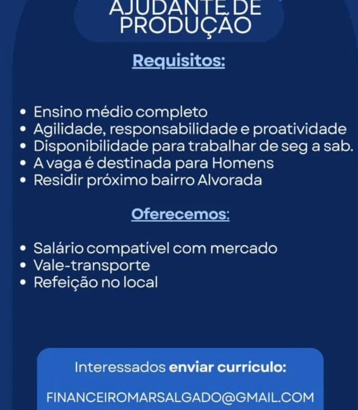 Empresa está selecionando Ajudante de produção; Envie seu currículo!