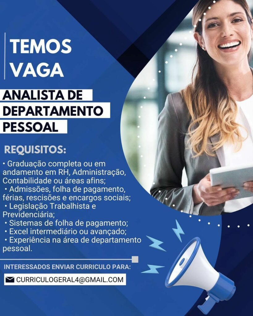 Empresa está selecionando Analista de departamento pessoal; Envie seu currículo!