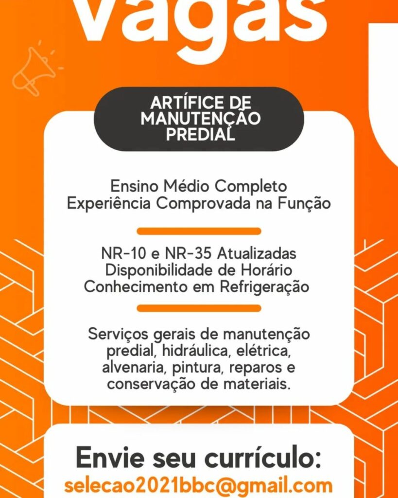 Empresa está selecionando Artífice de manutenção predial; Envie seu currículo!