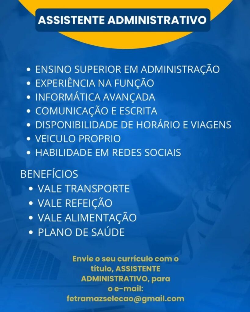 Empresa está selecionando Assistente administrativo; Envie seu currículo!