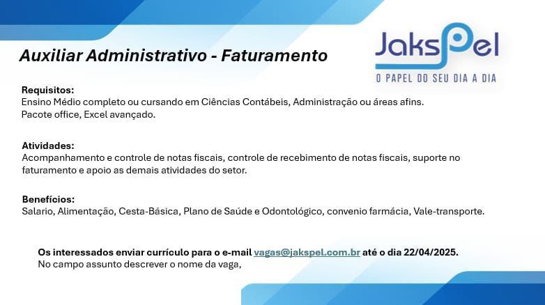 Empresa está selecionando Auxiliar administrativo faturamento; Envie seu currículo!