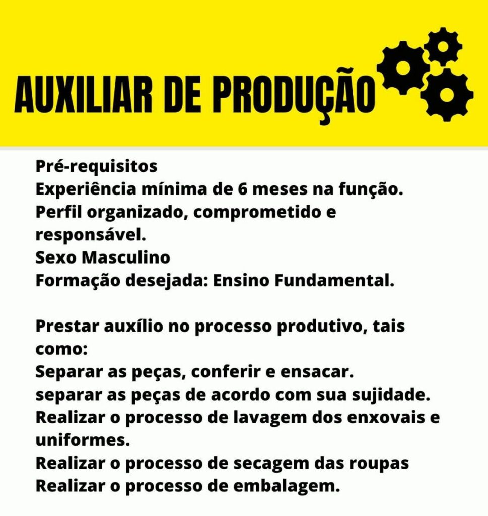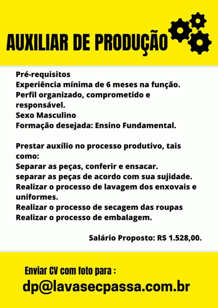 Empresa está selecionando Auxiliar de produção; Envie seu currículo!