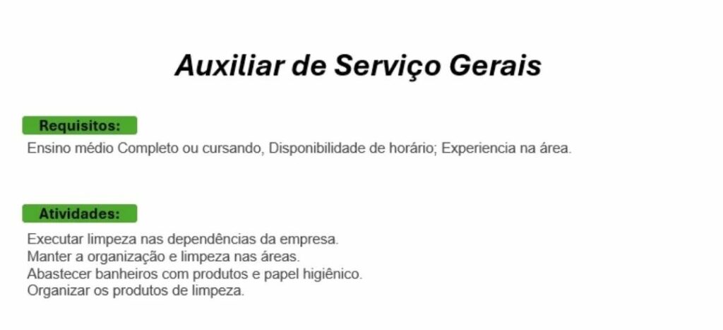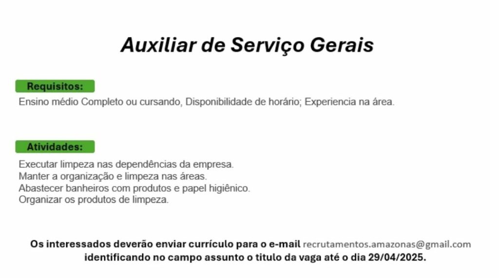 Empresa está selecionando Auxiliar de serviços gerais; Envie seu currículo!
