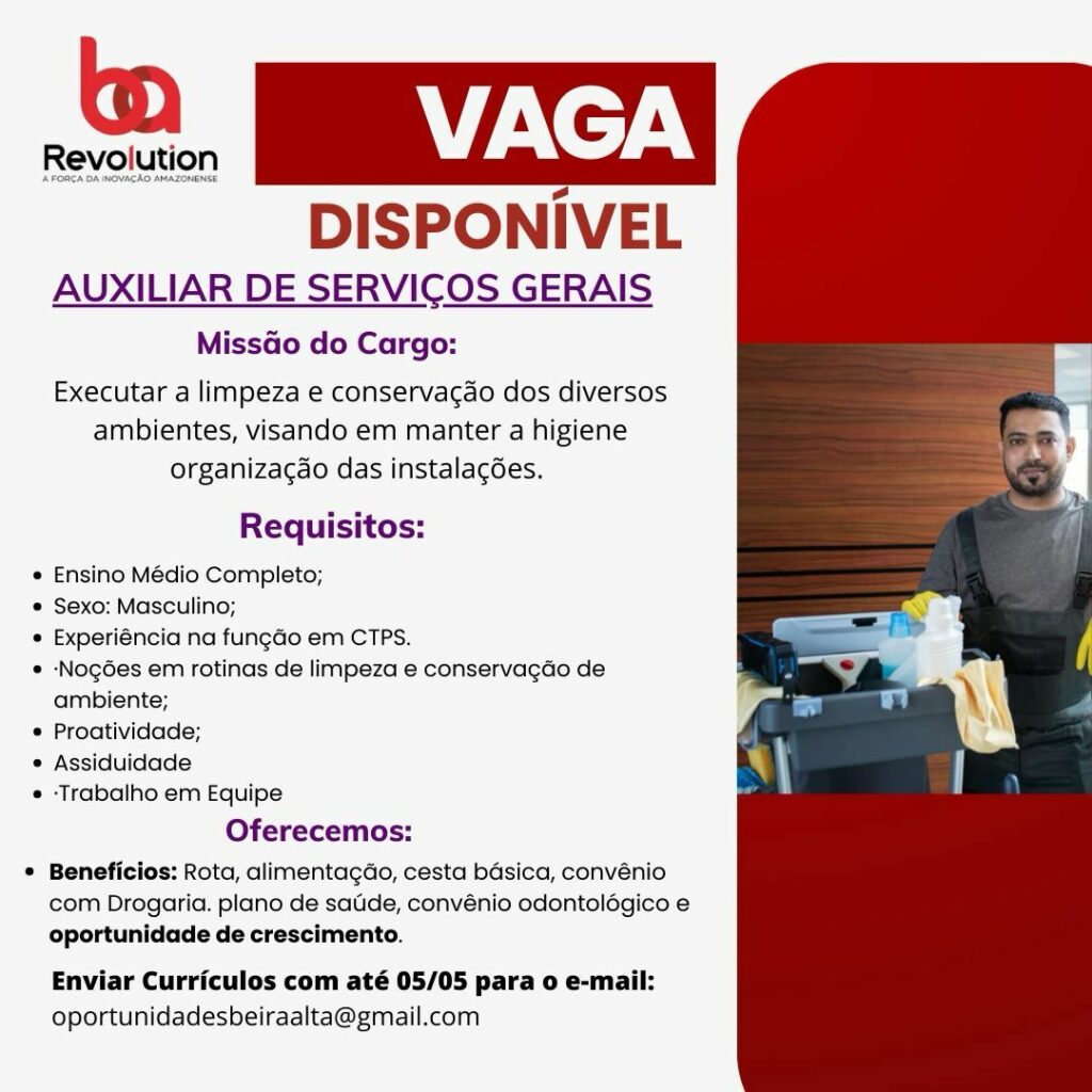 Empresa está selecionando Auxiliar de serviços gerais; Envie seu currículo!