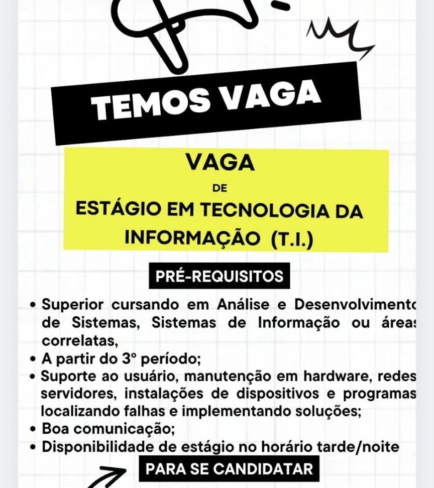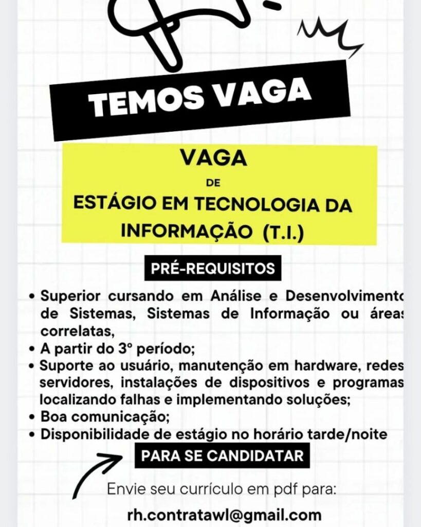 Empresa está selecionando Estágio em tecnologia da informação TI; Envie seu currículo!