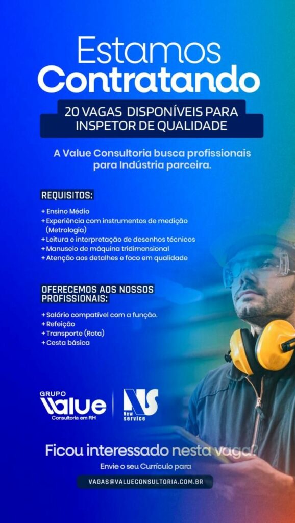 Empresa está selecionando Inspetor da qualidade (20 Vagas); Envie seu currículo!