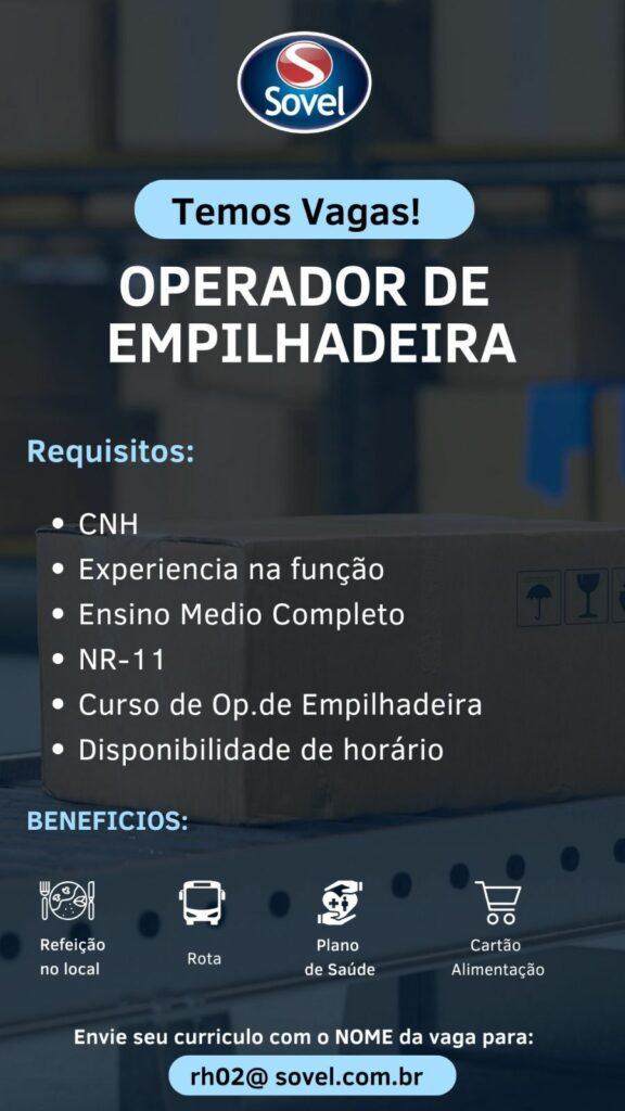 Empresa está selecionando Operador de empilhadeira; Envie seu currículo!