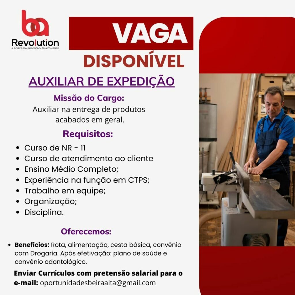 Empresa está selecionando Operador de máquina, Auxiliar de expedição; Envie seu currículo!
