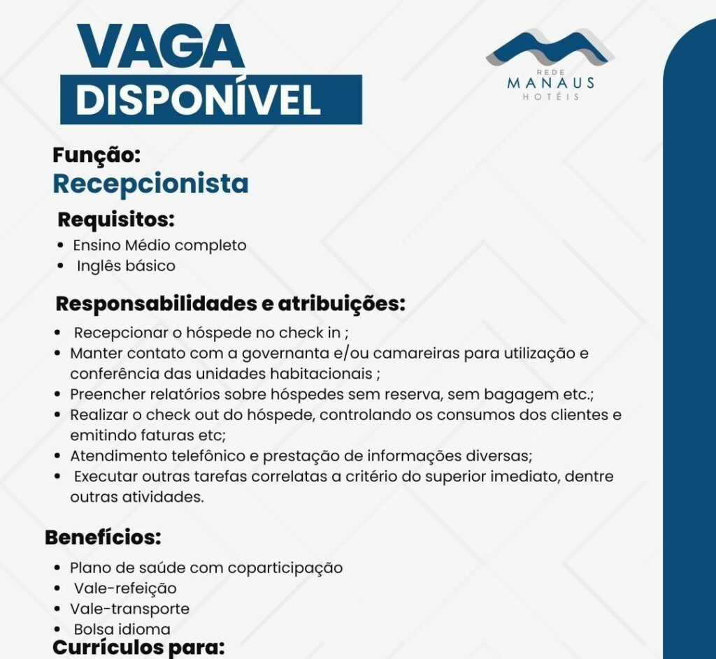 • Hospital Santa Júlia abre vaga para maqueiro em Manaus