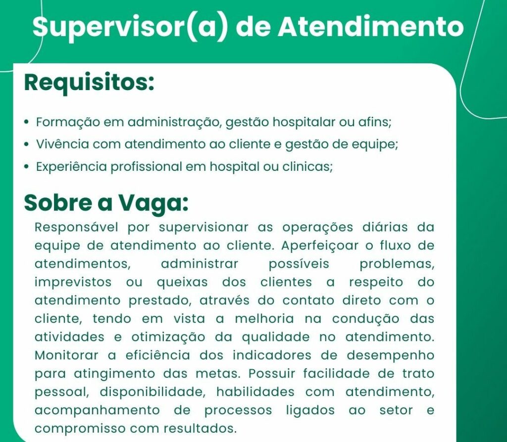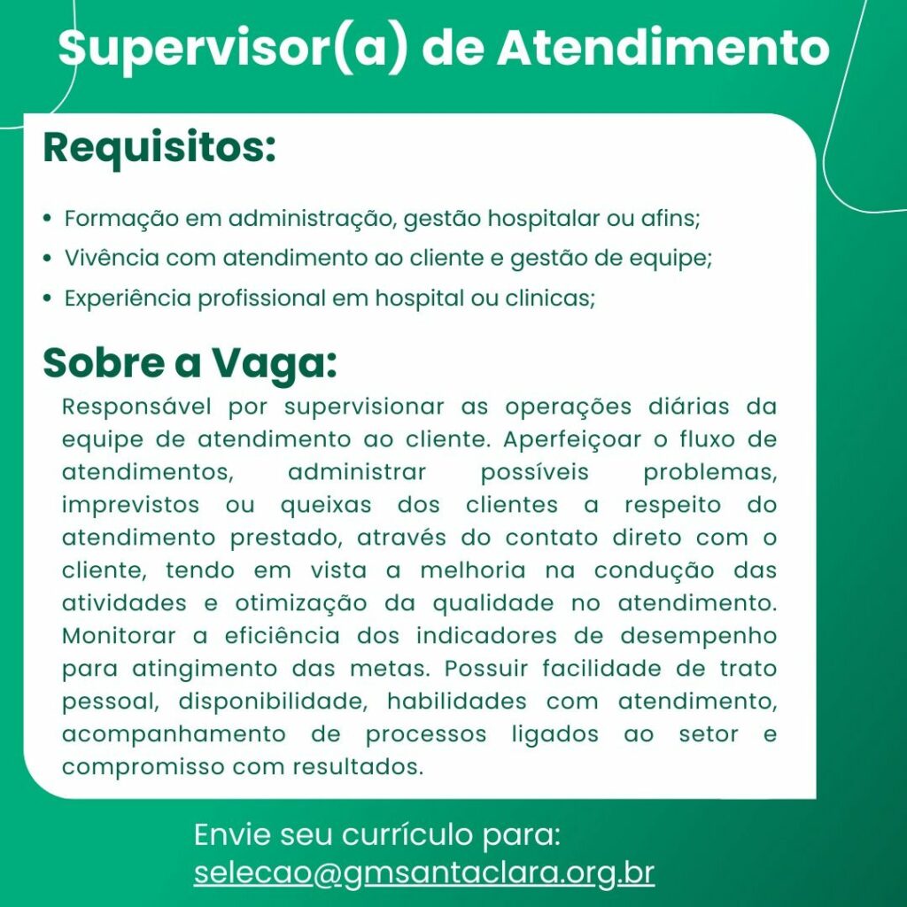 Empresa está selecionando Supervisor (a) de atendimento; Envie seu currículo!