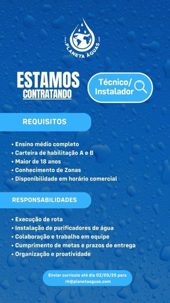 Empresa está selecionando Técnico Instalador; Envie seu currículo!