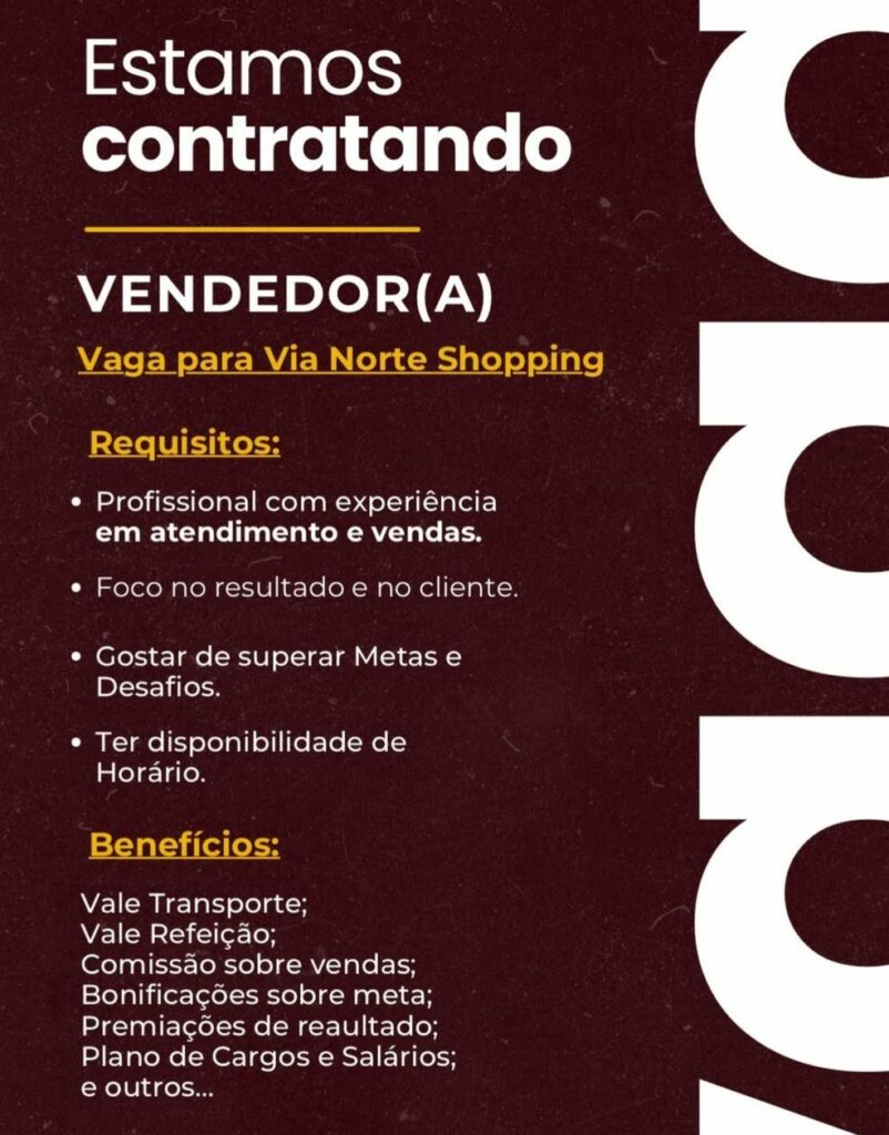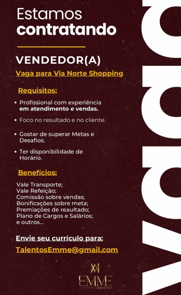 Empresa está selecionando Vendedor (a); Envie seu currículo!