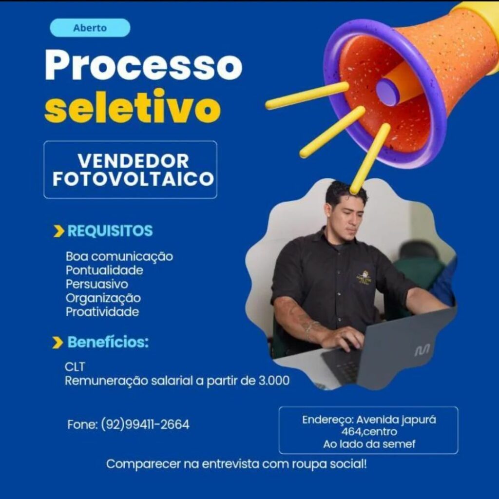 Empresa está selecionando Vendedor fotovoltaico; Envie seu currículo!