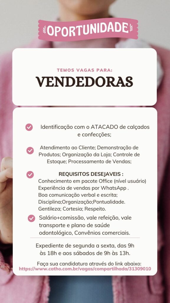 Empresa está selecionando Vendedoras; Envie seu currículo!