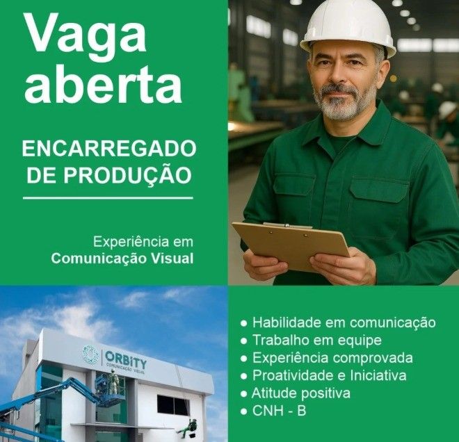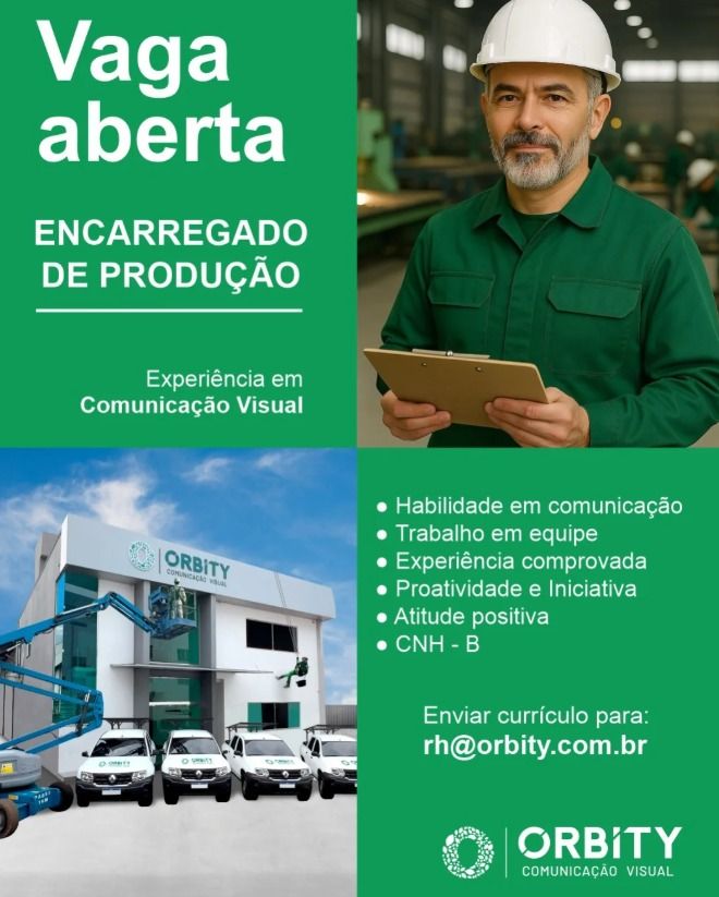 Empresa Orbity seleciona Encarregado de produção; Envie seu currículo!
