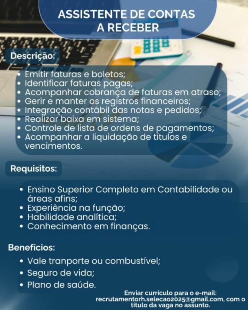 Empresa seleciona Assistente de contas a pagar; Envie seu currículo!