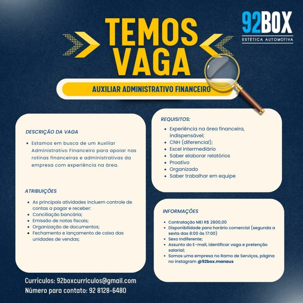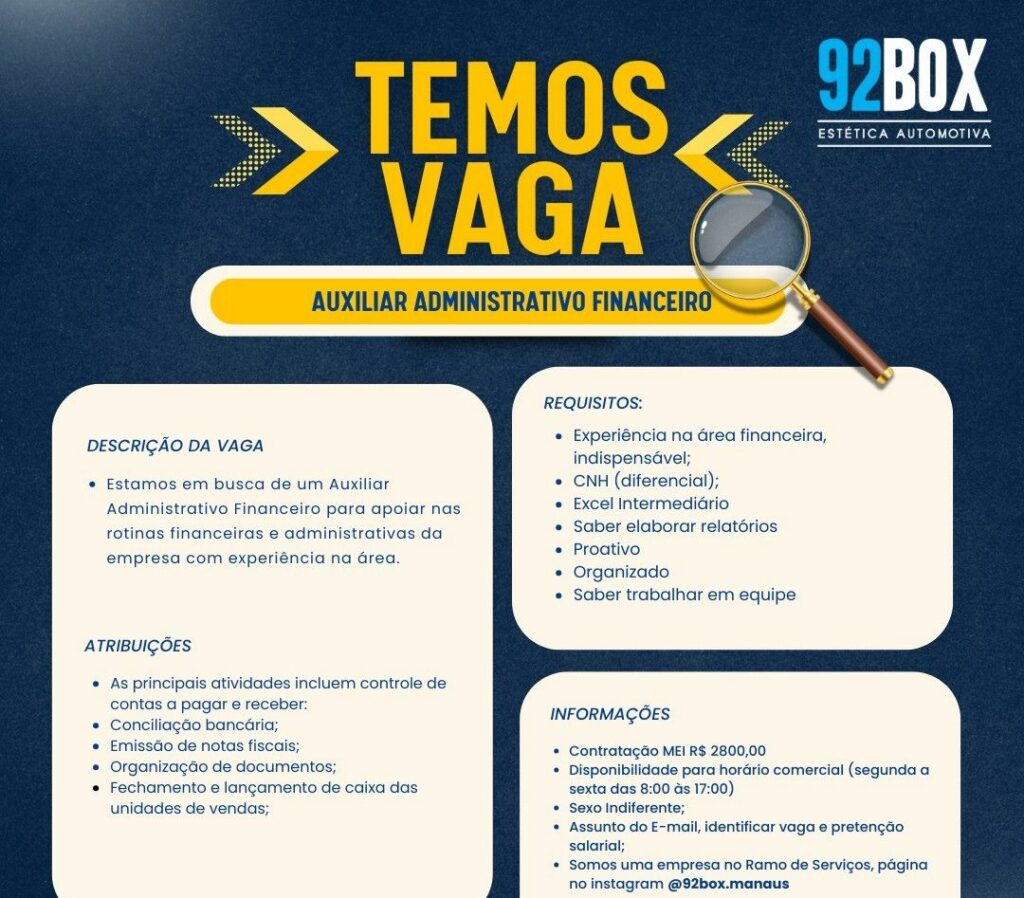 Empresa seleciona Auxiliar administrativo financeiro; Envie seu currículo!