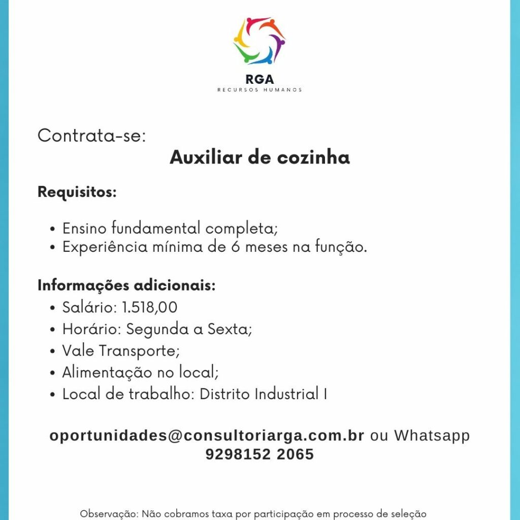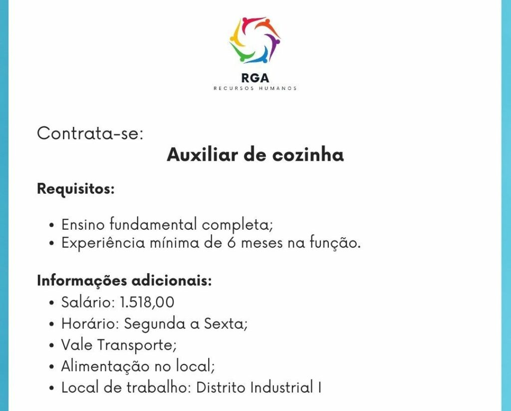 Empresa seleciona Auxiliar de cozinha; Envie seu currículo!