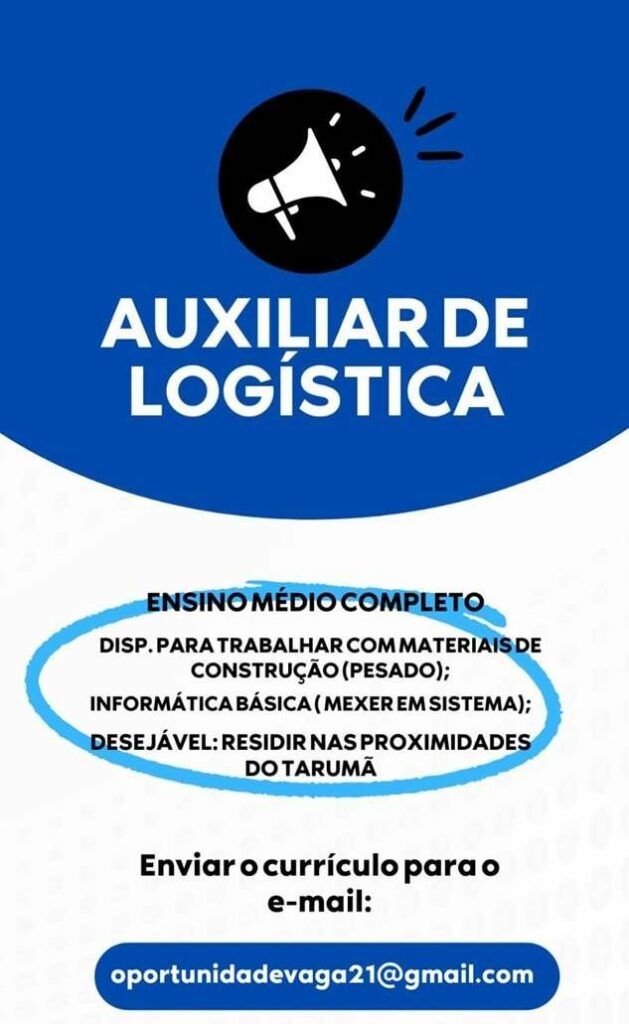 Empresa seleciona Auxiliar de logística; Envie seu currículo!