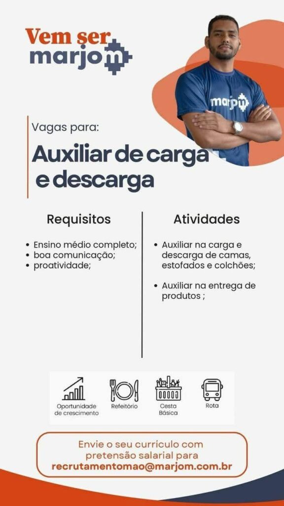 Empresa seleciona Auxiliar de produção, Auxiliar de carga e descarga; Envie seu currículo!