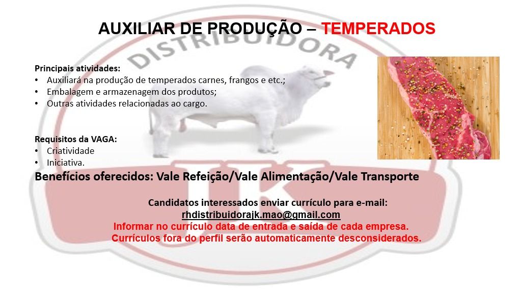 Empresa está selecionando Auxiliar de produção; Envie seu currículo!