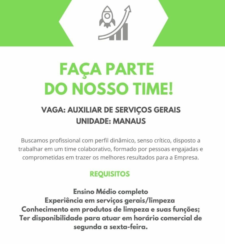 Empresa seleciona Auxiliar de serviços gerais; Envie seu currículo!