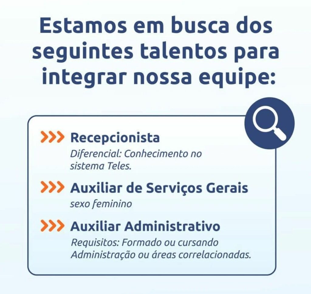 Empresa seleciona Auxiliar de serviços gerais, Recepcionista, Auxiliar administrativo; Envie seu currículo!