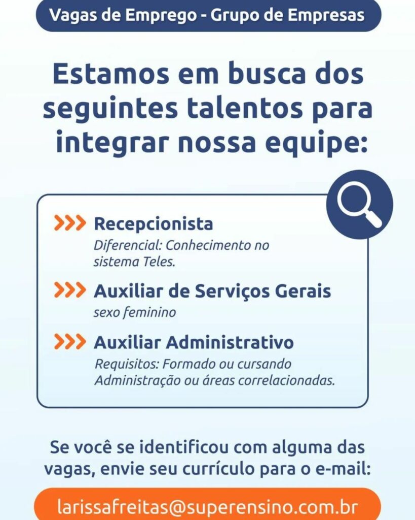 • Confira cinquenta oportunidades de emprego oferecido pelo grupo Chibatão