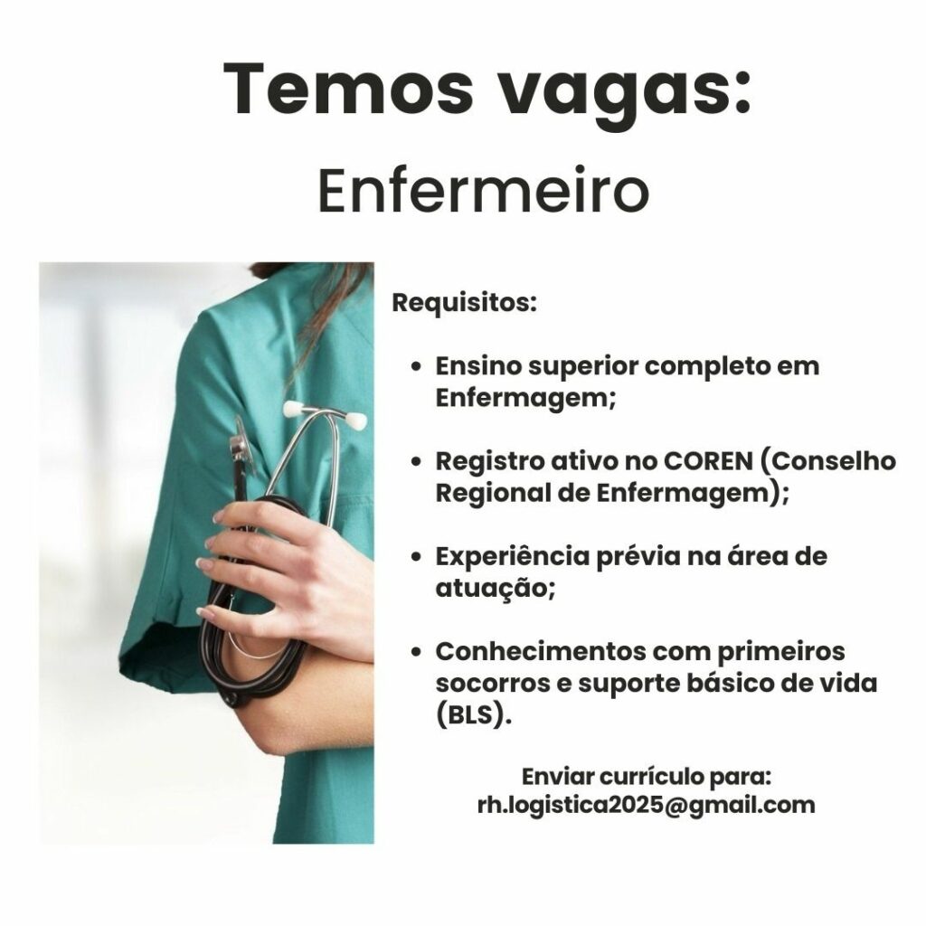 Empresa seleciona Enfermeiro; Envie seu currículo!