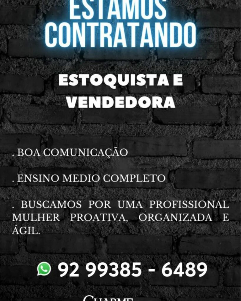 Empresa seleciona Estoquista, Vendedora; Envie seu currículo!