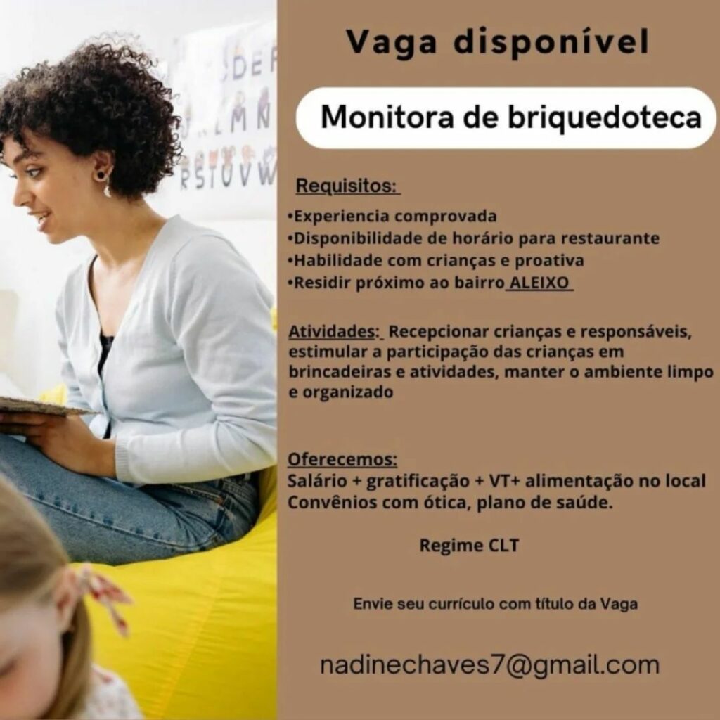 Empresa seleciona Monitora de briquedoteca; Envie seu currículo!