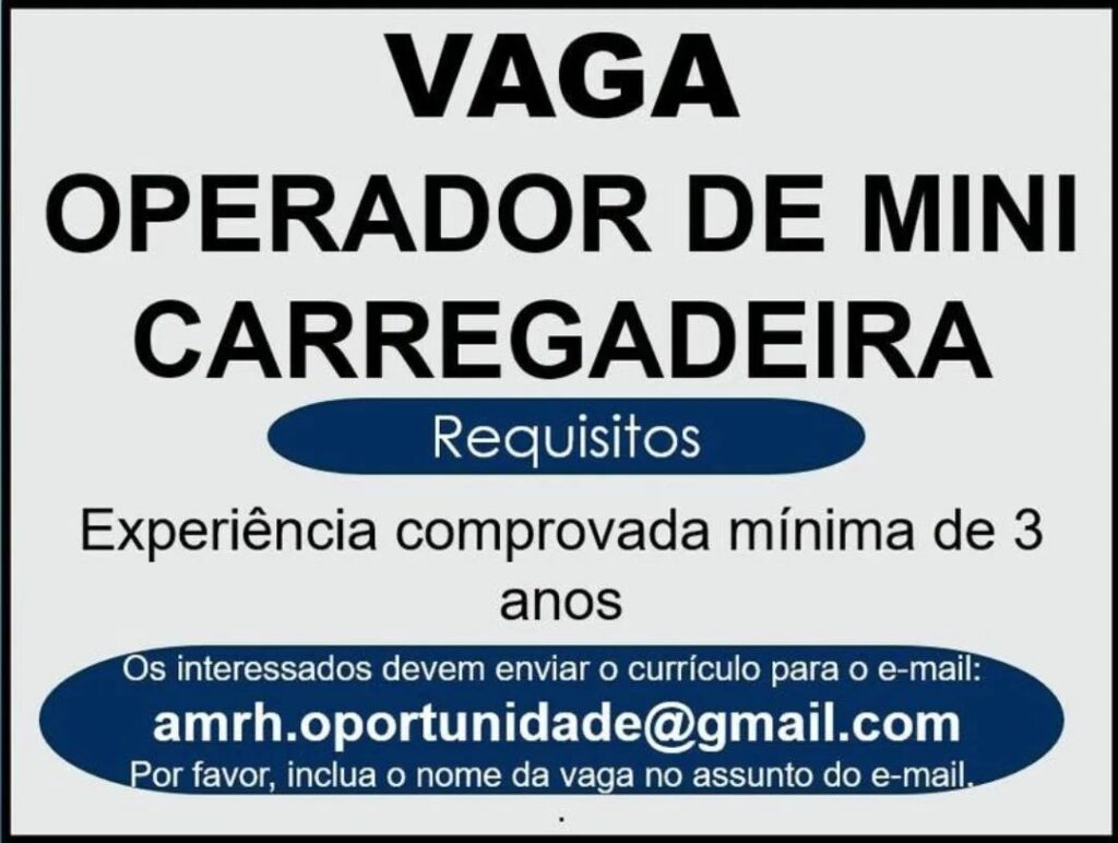 Empresa seleciona Operador de mini carregadeira; Envie seu currículo!