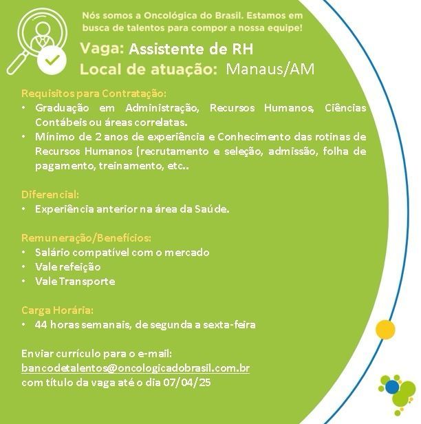 Empresa seleciona para vaga de Assistente de rh; Envie seu currículo!