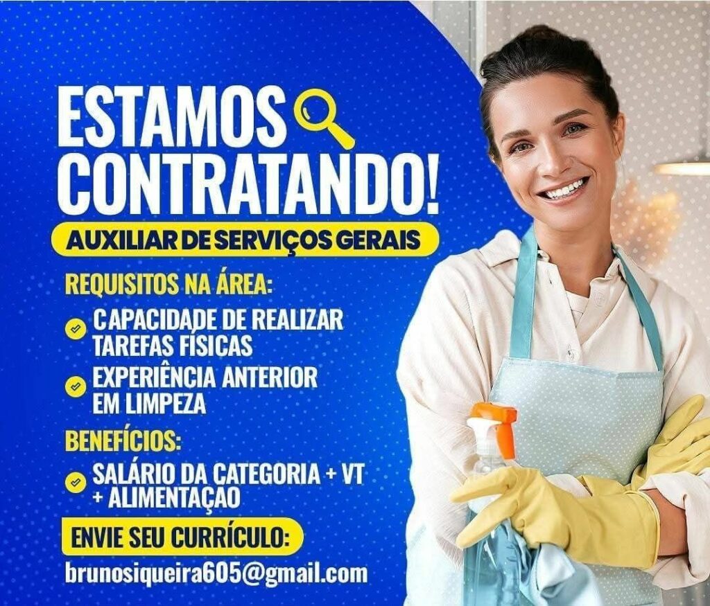 Empresa seleciona para vaga de Auxiliar de serviços gerais; Envie seu currículo!