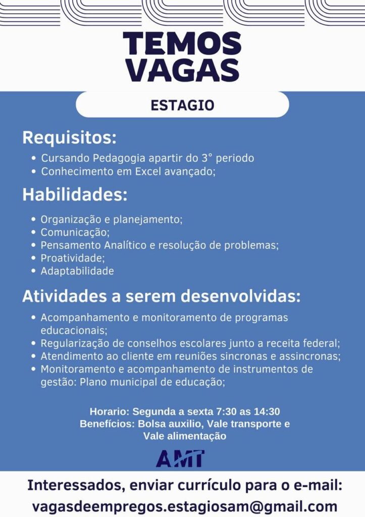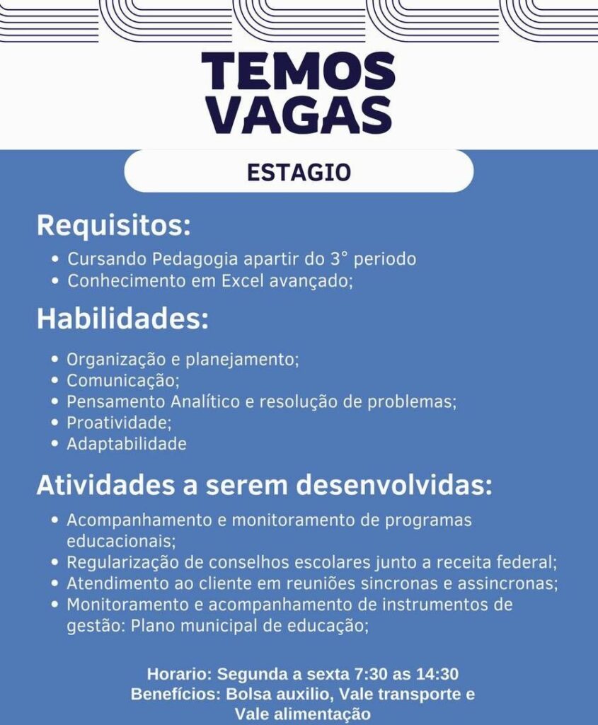 Empresa seleciona para vaga de Estagiário em Pedagogia; Envie seu currículo!