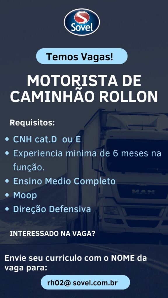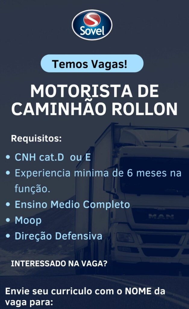 Empresa seleciona para vaga de Motorista de caminhão Rollon; Envie seu currículo!