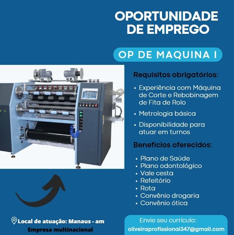 Empresa seleciona para vaga de Operador de máquina l; Envie seu currículo!