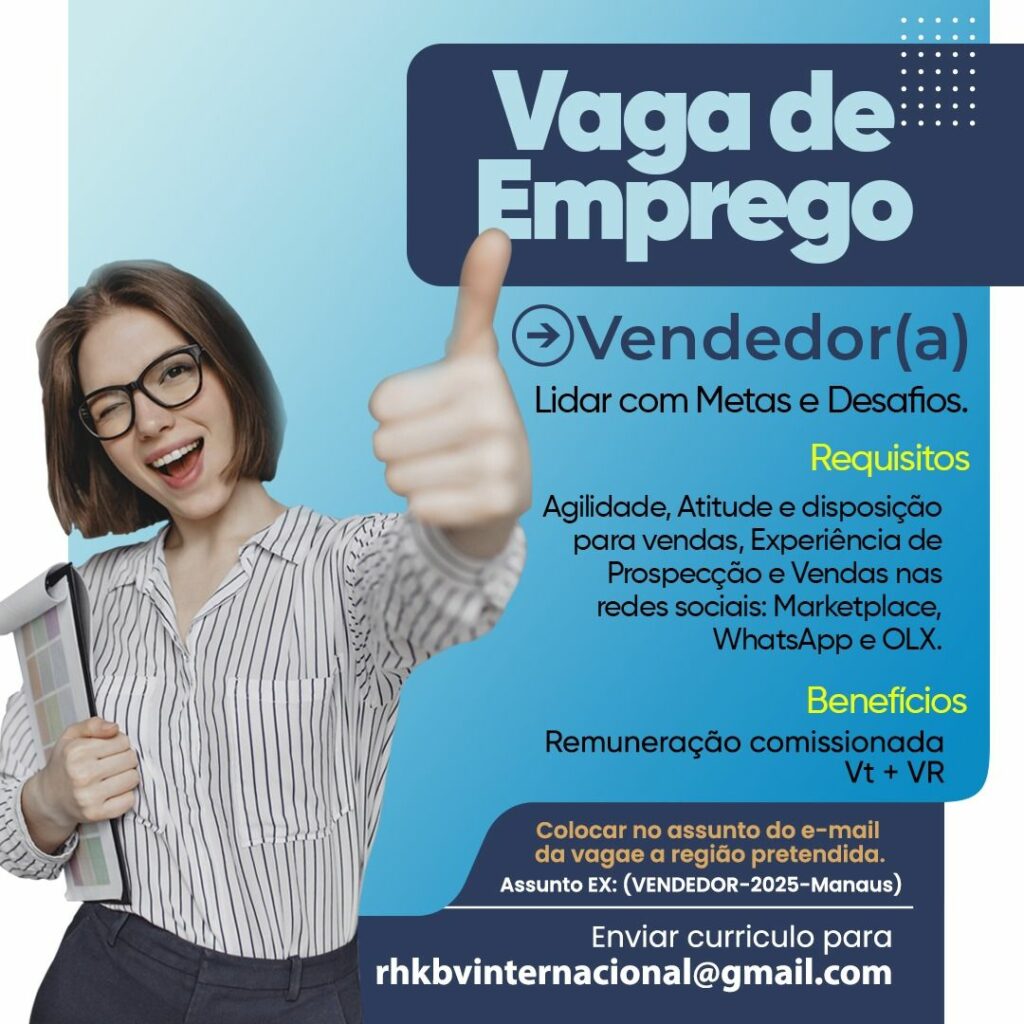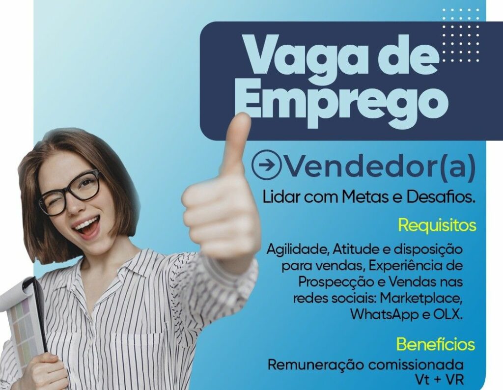 Empresa seleciona para vaga de Vendedor (a); Envie seu currículo!