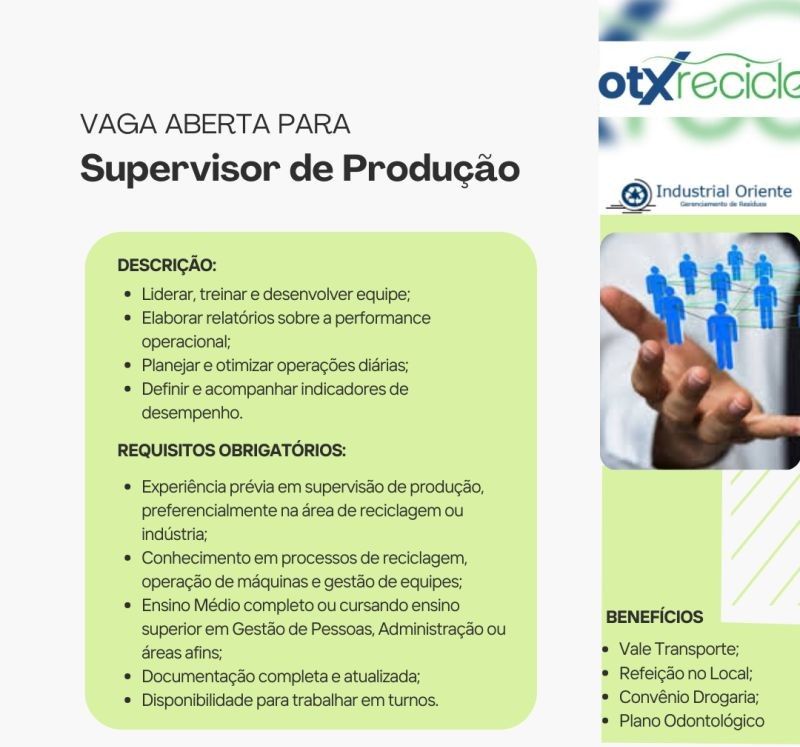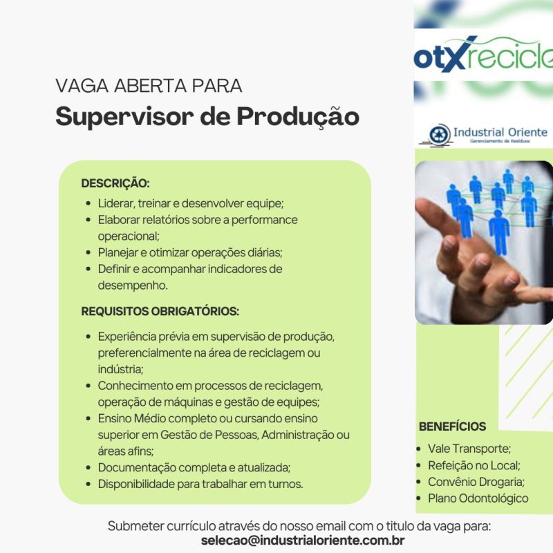 Empresa seleciona Supervisor de Produção; Envie seu currículo!