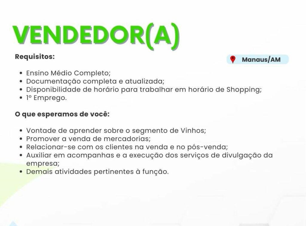 Empresa seleciona Vendedor (a); Envie seu currículo!