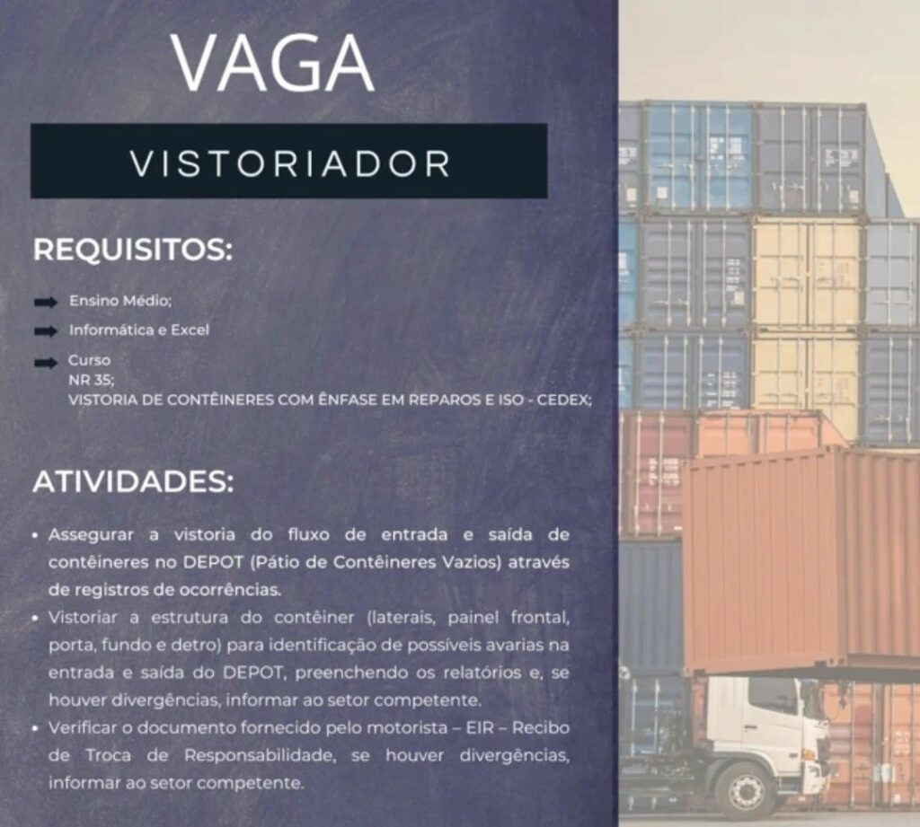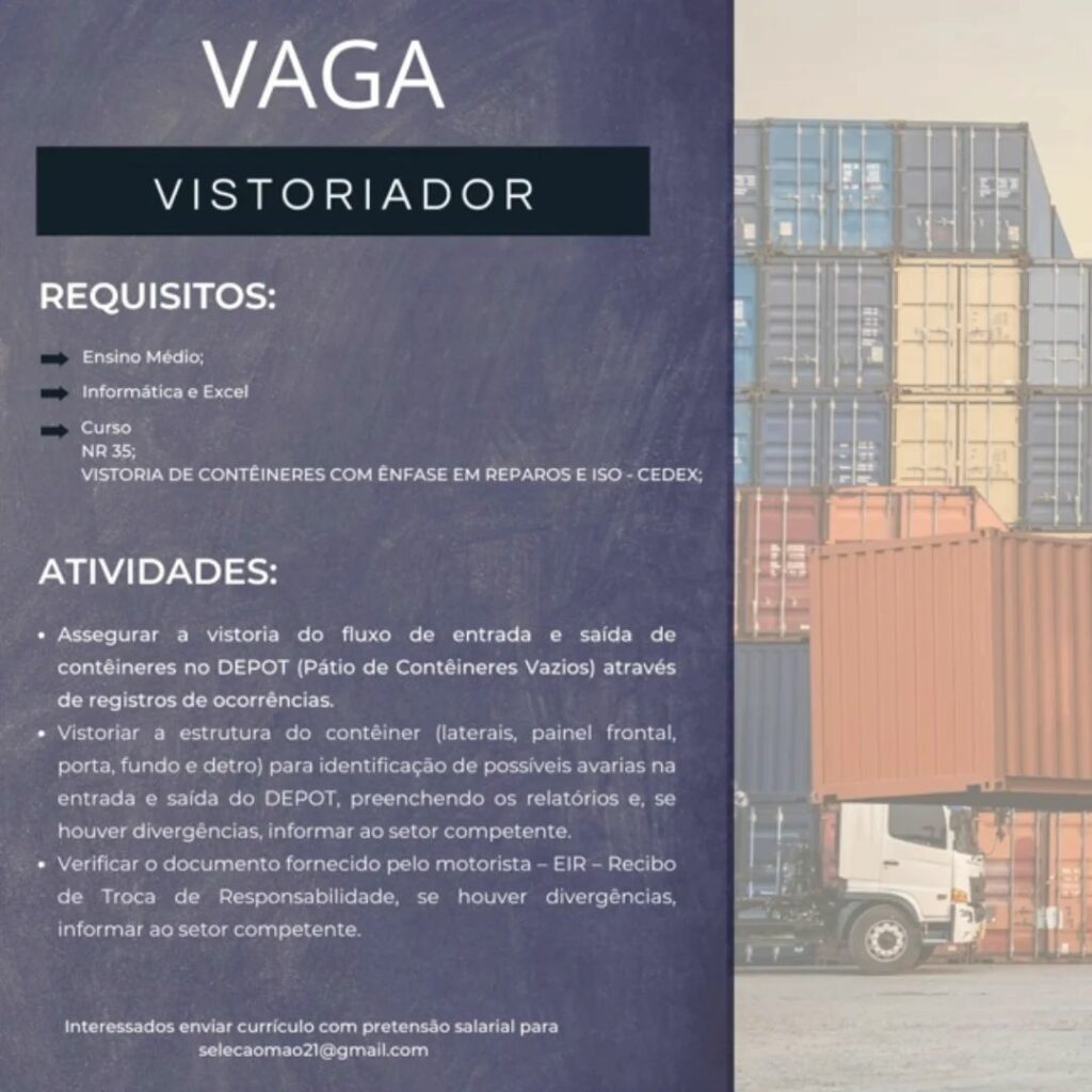 Empresa seleciona Vistoriador; Envie seu currículo!