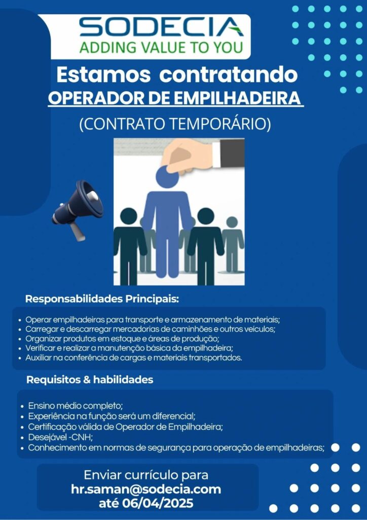 Empresa Sodecia seleciona para vagas de emprego; Envie seu currículo!