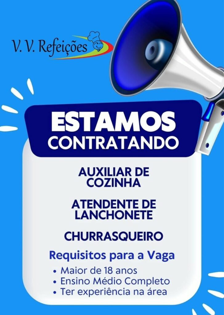 Empresa VV refeições seleciona Auxiliar de cozinha, Atendente de lanchonete, Churrasqueiro; Envie seu currículo!