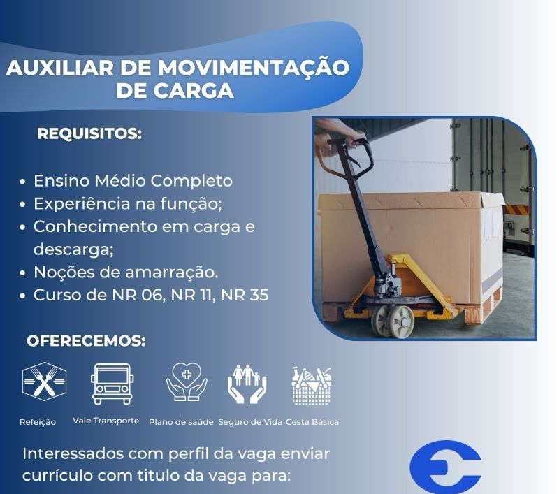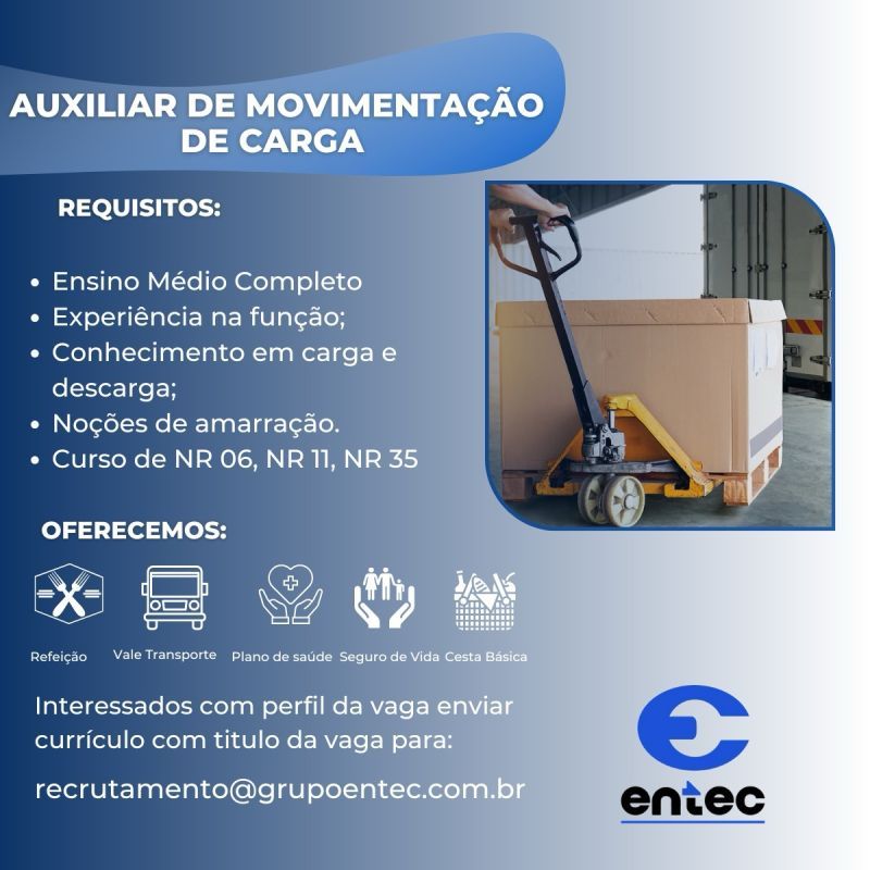 Entec seleciona Auxiliar de movimentação de carga; Envie seu currículo!