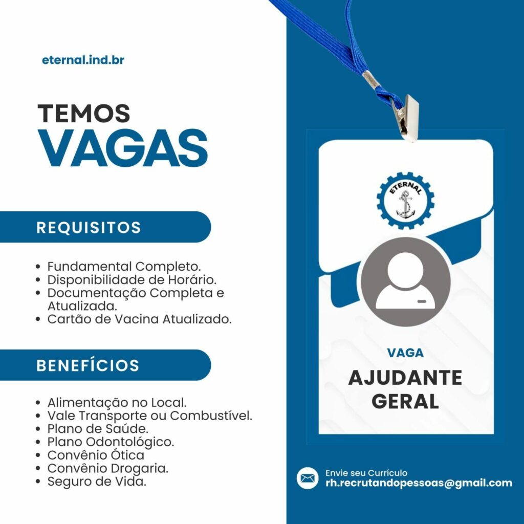 Eternal seleciona Ajudante geral; Envie seu currículo!