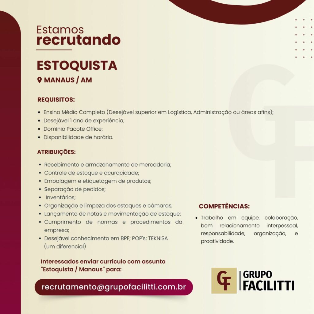 Grupo Facilitti seleciona Estoquista; Envie seu currículo!