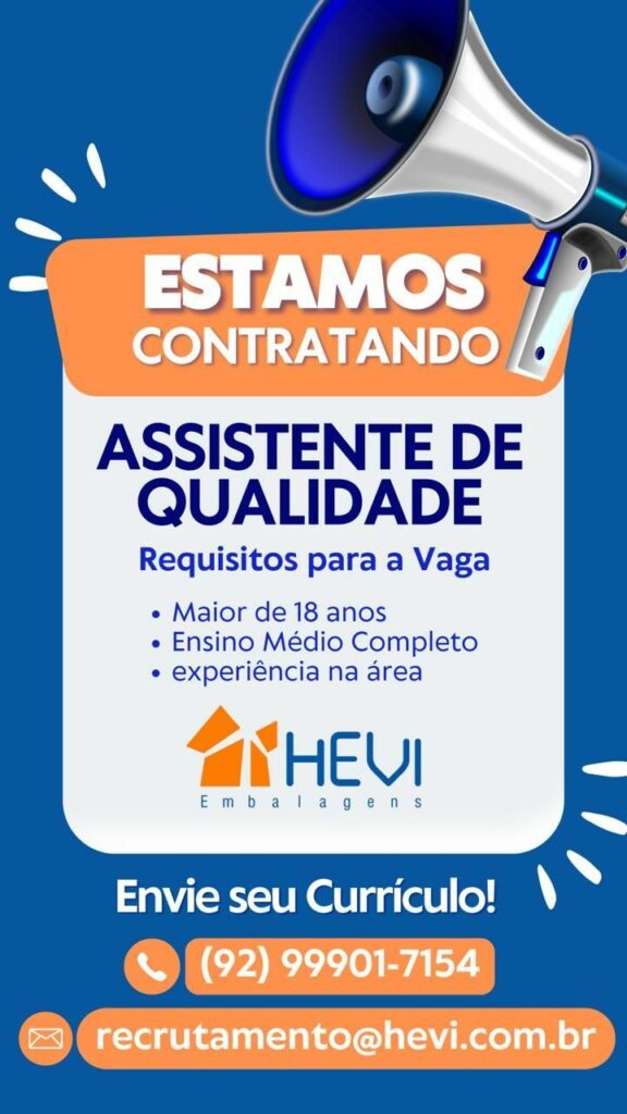 Hevi Embalagens seleciona Assistente de qualidade; Envie seu currículo!