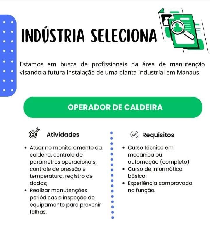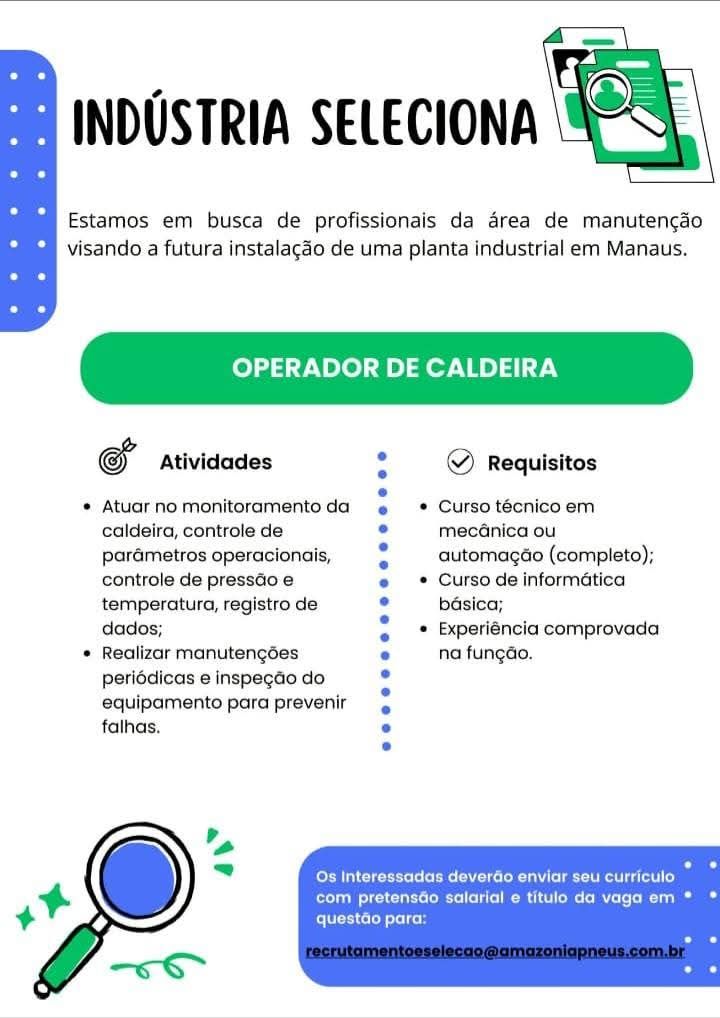 Indústria seleciona Operador de caldeira, Soldador; Envie seu currículo!