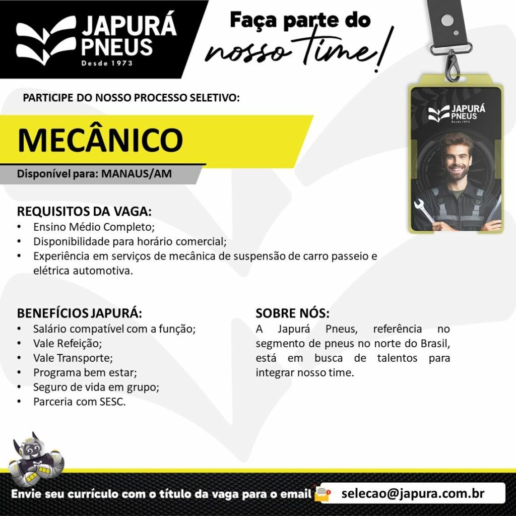 Japurá pneus seleciona Mecânico; Envie seu currículo!